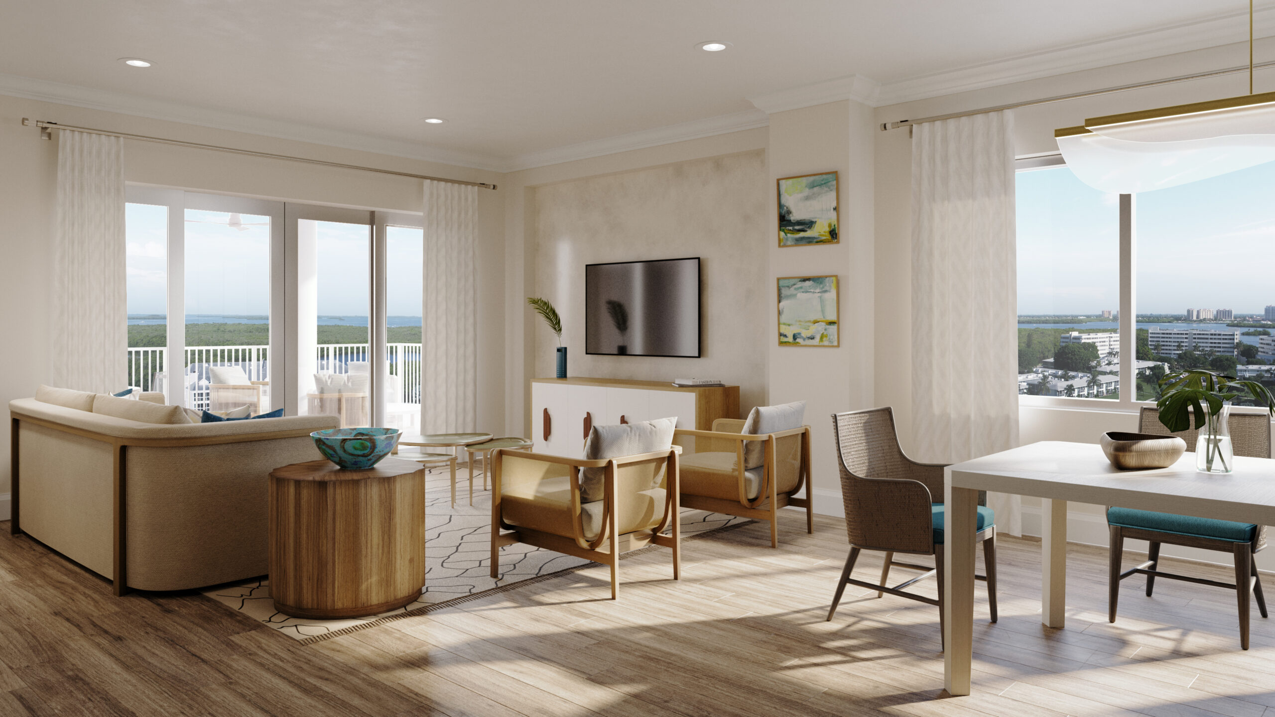 With interiors featuring a coastal-modern design, residences will be outfitted with hurricane-rated impact windows and doors, suites with walk-in closets, open-plan kitchen design with island, wood cabinetry with quartz countertops, Whirlpool stainless steel appliances and Kohler under-mount sinks and faucets. A Social Room and Terrace on the first residential floor will also provide a catering kitchen for special gatherings for all Vista Cay residents.